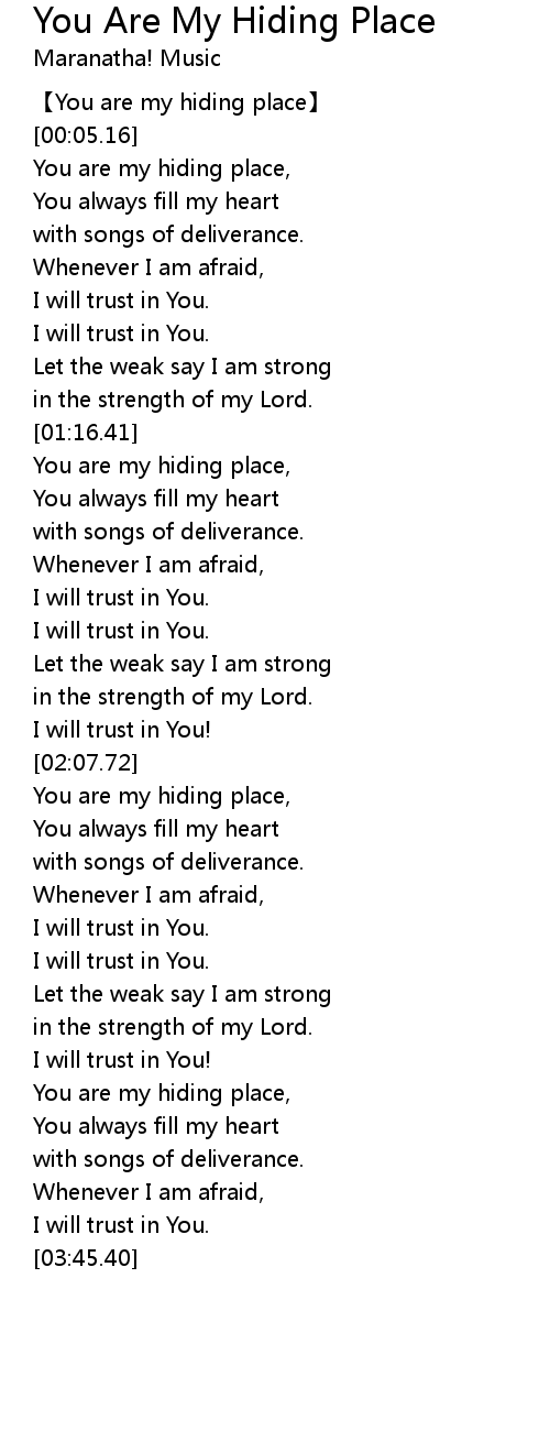 | [00:00.13] | You are my hiding place |