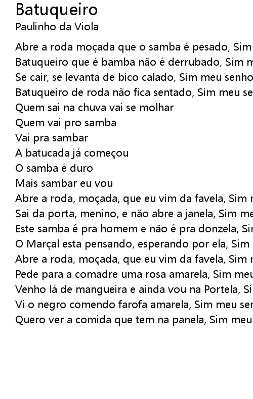 | Abre a roda moçada que o samba é pesado, Sim meu senhor | |