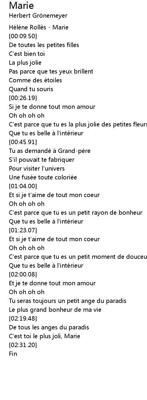 | [02:27.62] | C' est toi le plus joli, Marie |