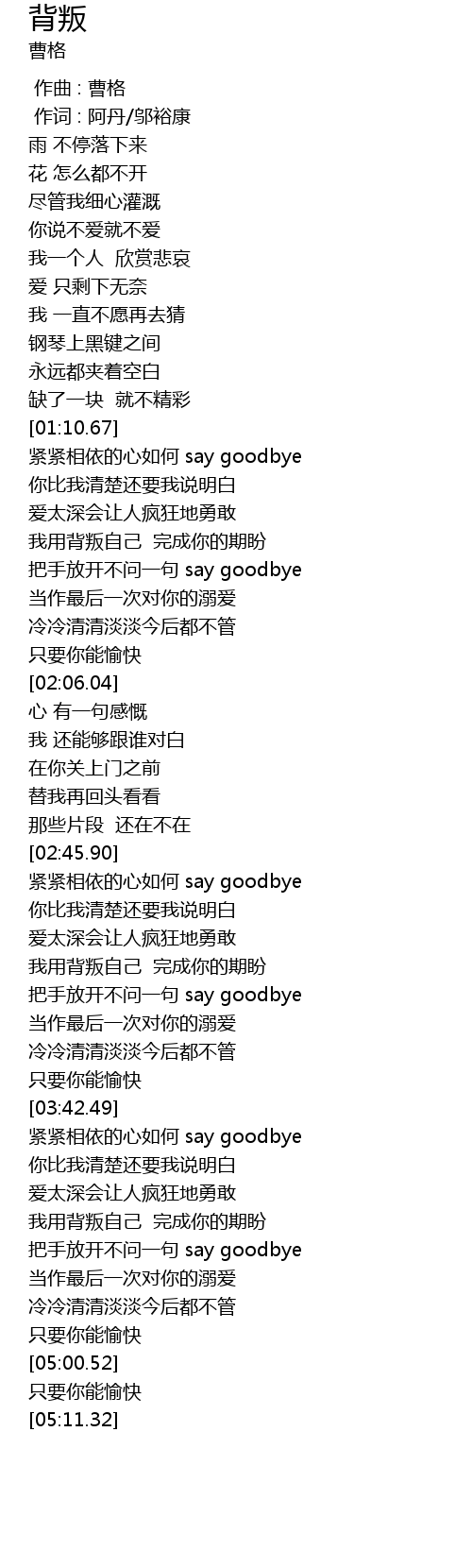 | [01:39.69] | 把手放开不问一句 say goodbye |