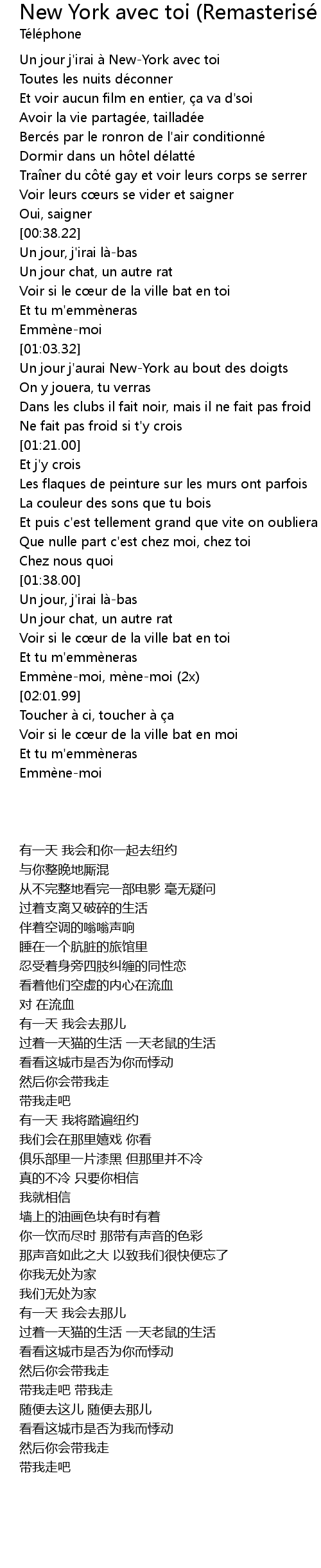| [00:11.90] | Un jour j' irai à NewYork avec toi |