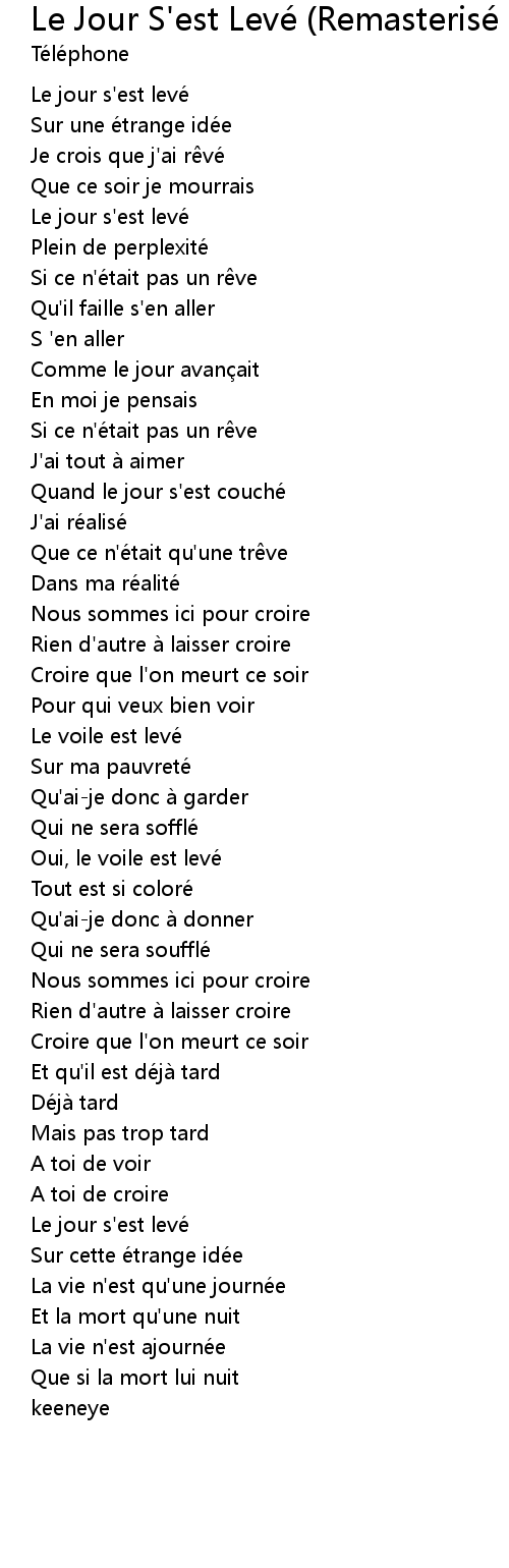 | Song | Le Jour S'est Levé (Remasterisé En 2006) |