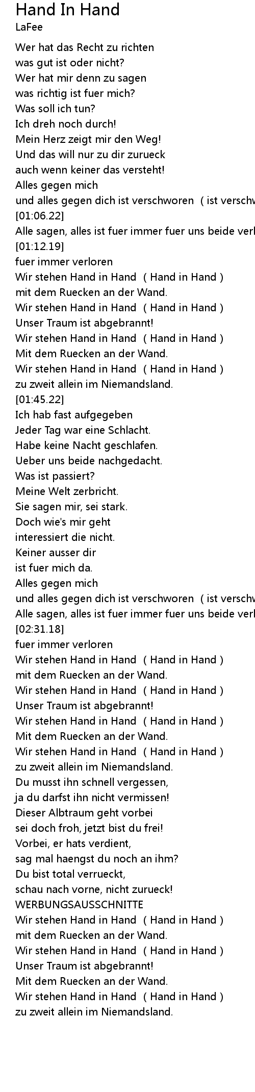 | [01:18.46] | Wir stehen Hand in Hand (Hand in Hand) |