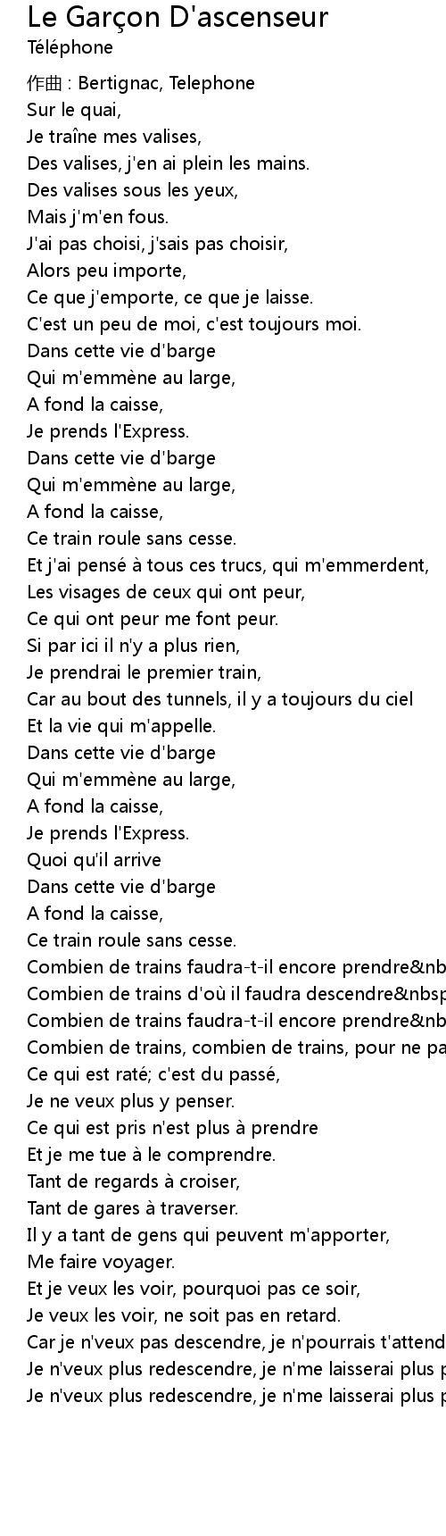 | Car je n' veux pas descendre, je n' pourrais t' attendre, non, non, non | |