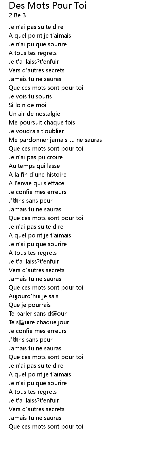 | Song | Des Mots Pour Toi |