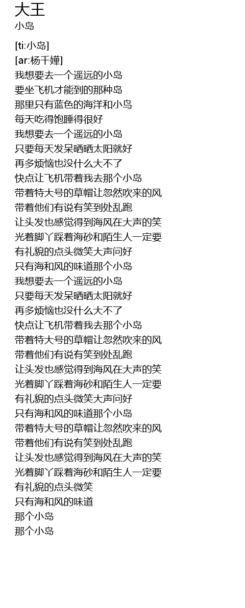 | [00:15.677] | 我想要去一个遥远的小岛 |
