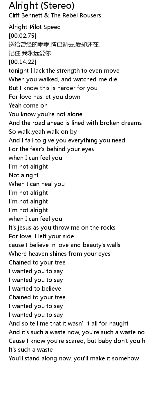 | [00:01.54] | Alright-Pilot Speed |