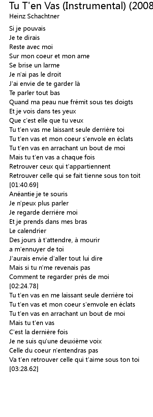 | [01:03.10] | Tu t' en vas et mon coeur s' envole en e clats |