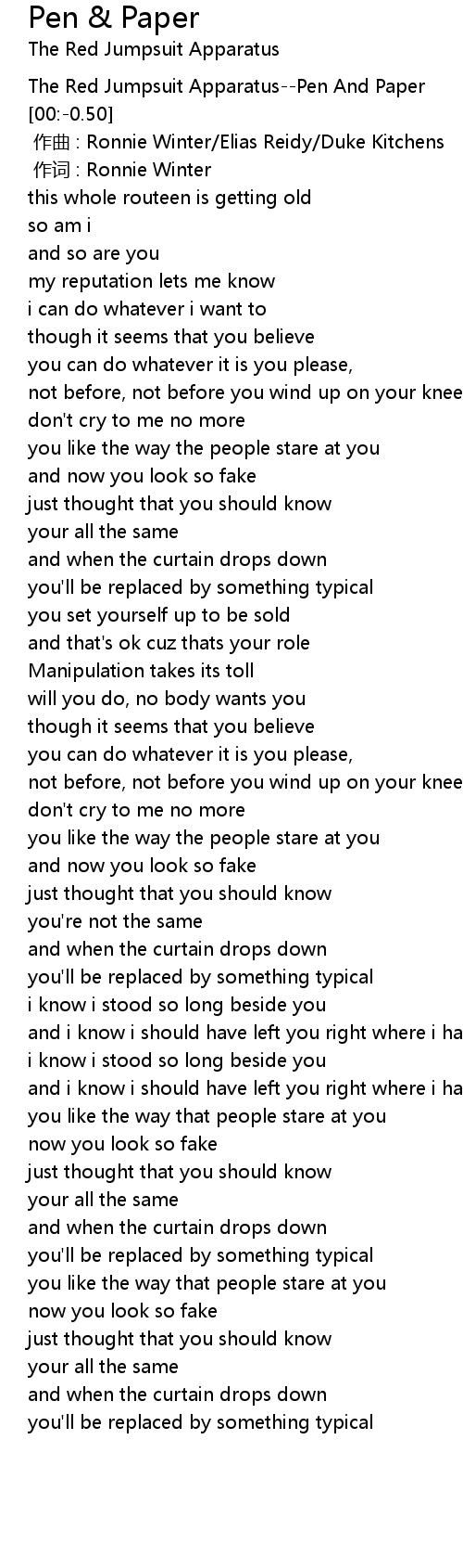 | [00:-1.00] | The Red Jumpsuit ApparatusPen And Paper |