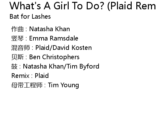 | Song | What's A Girl To Do? (Plaid Remix) |