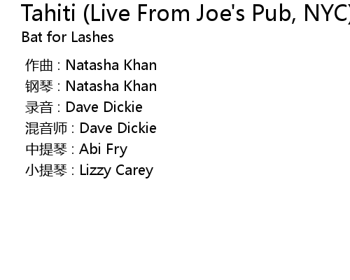 | Song | Tahiti (Live From Joe's Pub, NYC) |