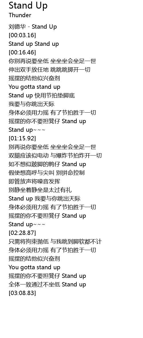 | [03:04.53] | 全体一致通过不坐低 Stand up |