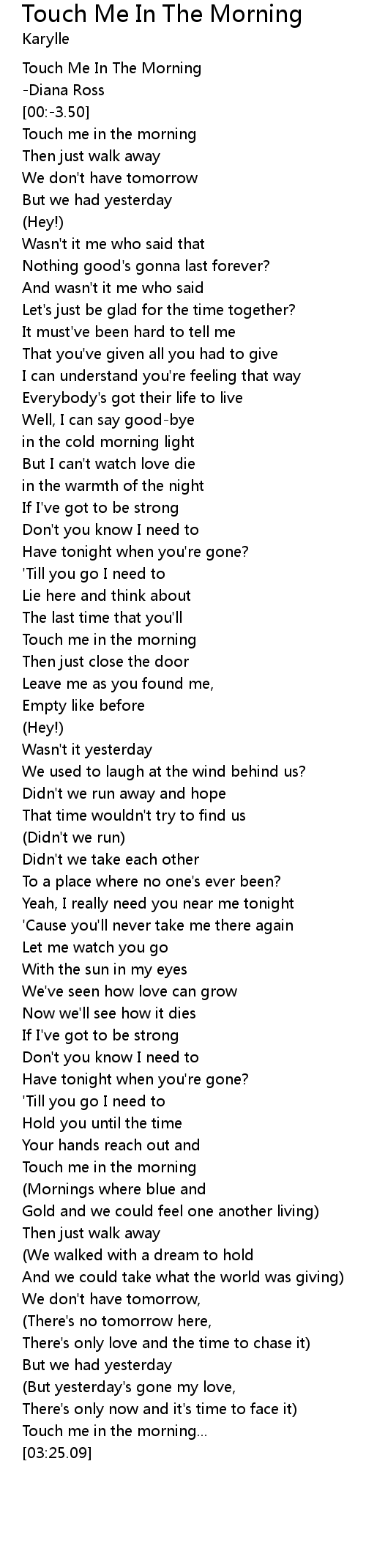 [03:21.37] Touch me in the morning...