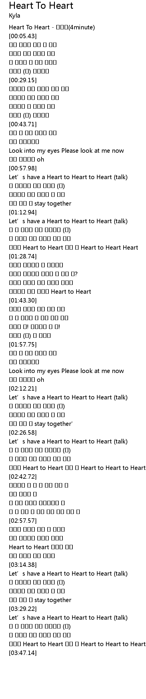| [00:02.11] | Heart To Heart - 포미닛(4minute) |
