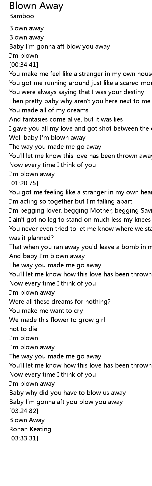 And baby I'm blown away |