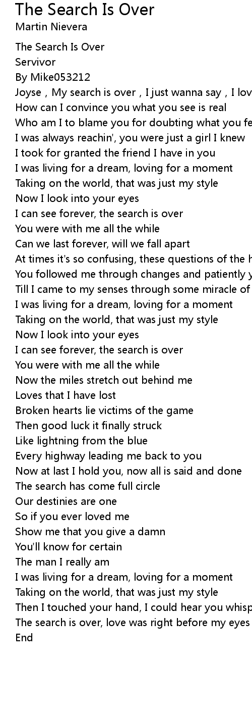 | Song | The Search Is Over |
