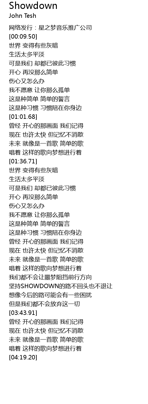 | [03:19.73] | 坚持SHOWDOWN的路不回头也不退让 |