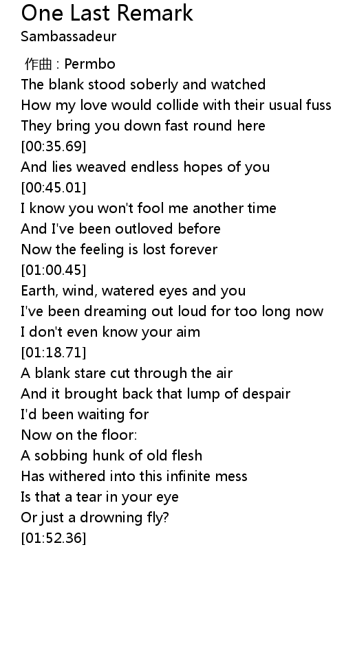 | [01:03.05] | Earth, wind, watered eyes and you |