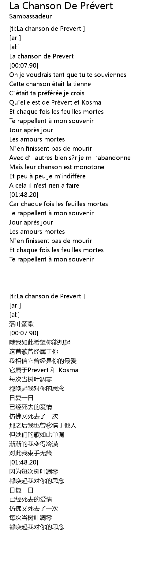 | [00:44.88] | Et chaque fois les feuilles mortes |
