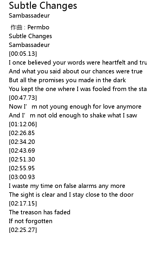 | [00:18.50] | I once believed your words were heartfelt and true |