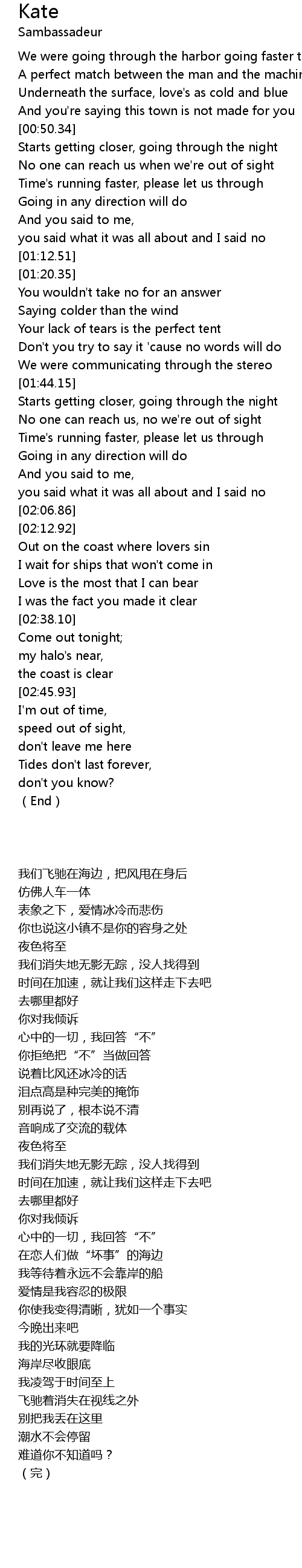 | [00:51.53] | Starts getting closer, going through the night |