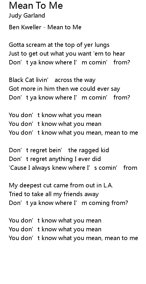 | You don' t know what you mean, mean to me | |