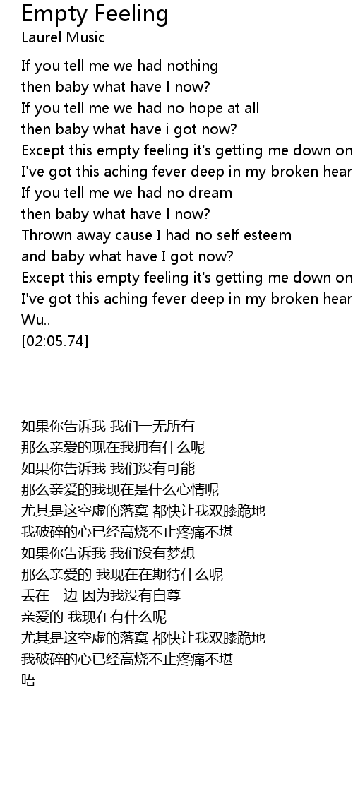 Except this empty feeling it's getting me down on my knees |