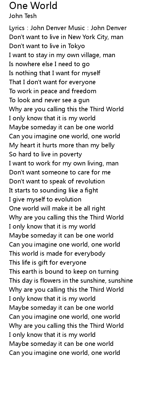 | Can you imagine one world, one world | |