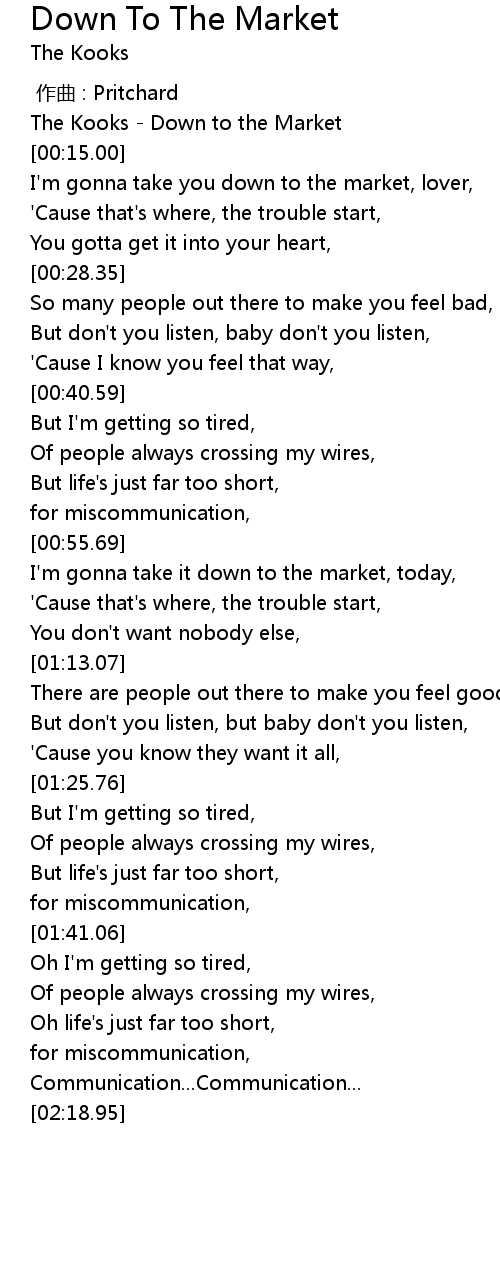 | [00:00.00] | The Kooks Down to the Market |