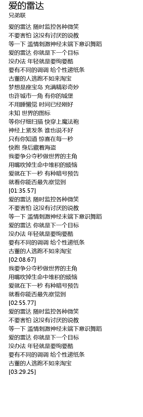 | [00:33.42] | 爱的雷达 你就是下一个目标 |