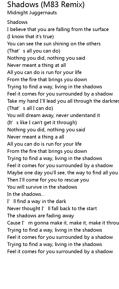 | [00:23.55] | Shadows |