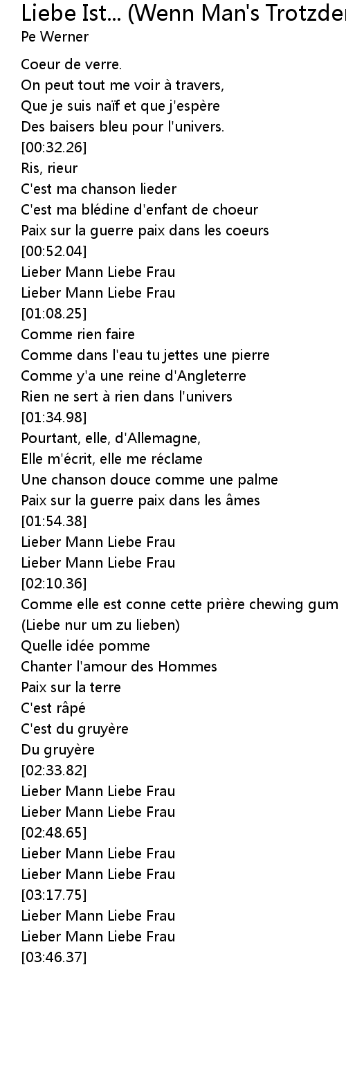 | [03:02.45] | Lieber Mann Liebe Frau |