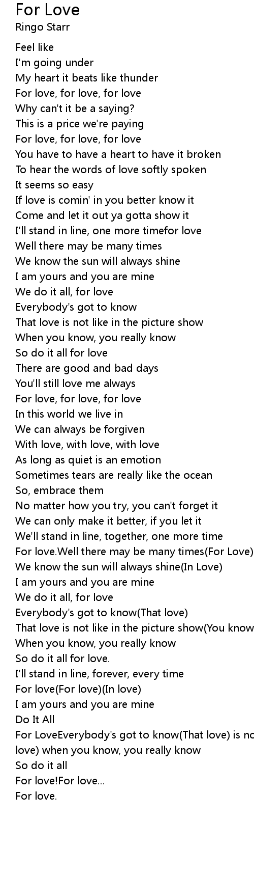For LoveEverybody's got to know(That love) is not like in the picture show(In love) when you know, you really know |