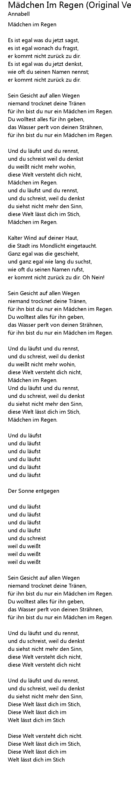 | Song | Mädchen Im Regen (Original Version) |