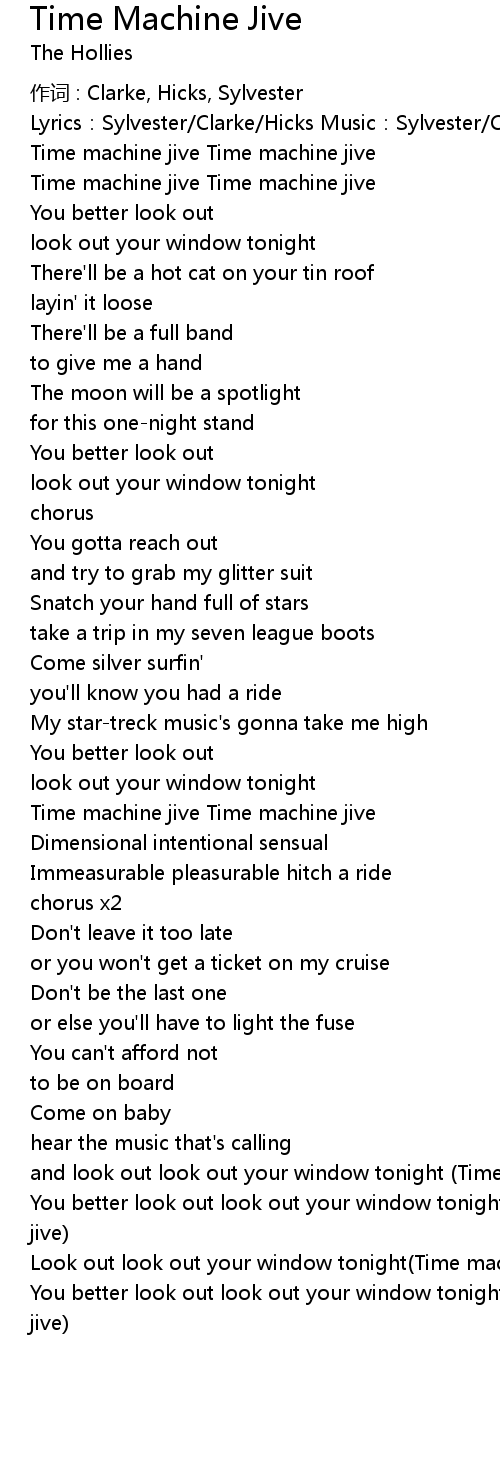| You better look out look out your window tonight Time machine jive Time machine jive | |