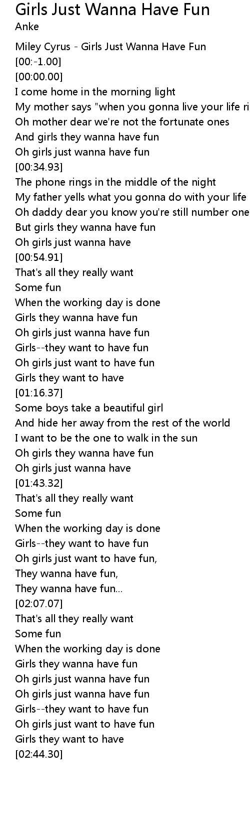 Miley Cyrus - Girls Just Wanna Have Fun |