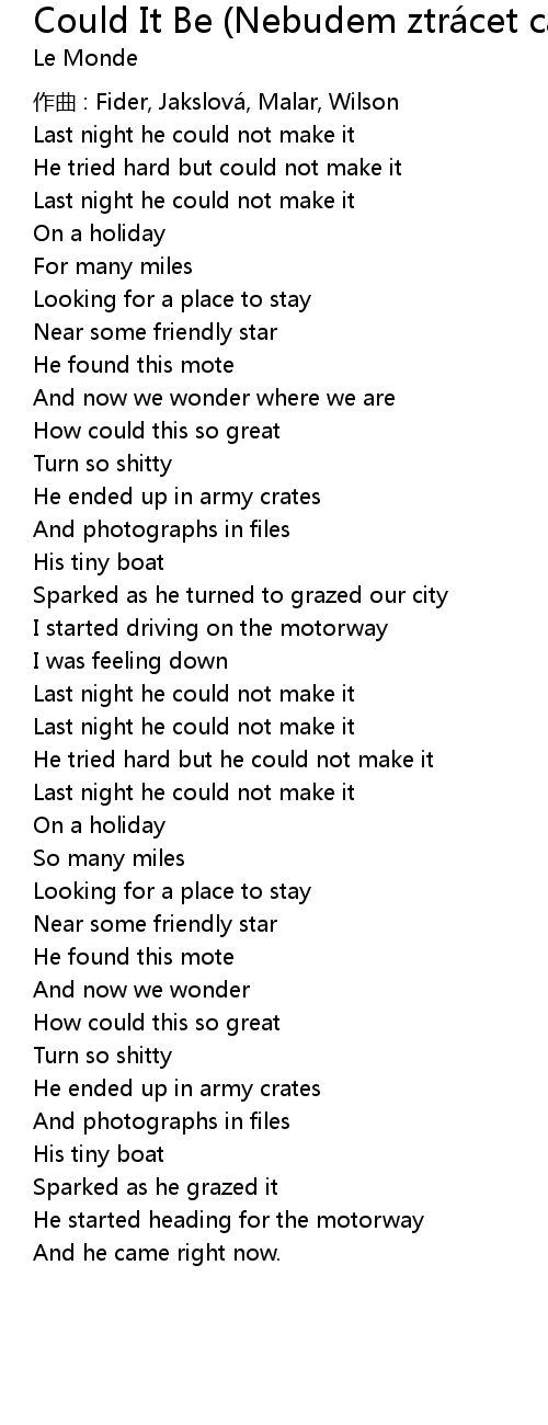 | Song | Could It Be (Nebudem ztrácet cas) |