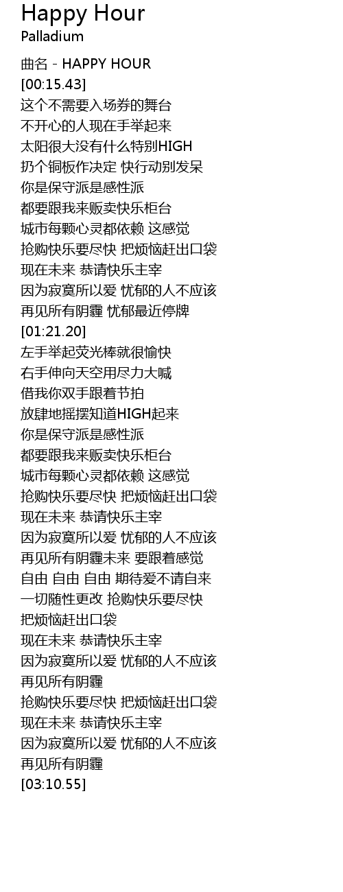 | [00:00.37] | 曲名-HAPPY HOUR |