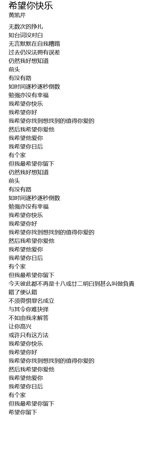 | [00:43.000] | wǒ xī wàng nǐ kuài lè |