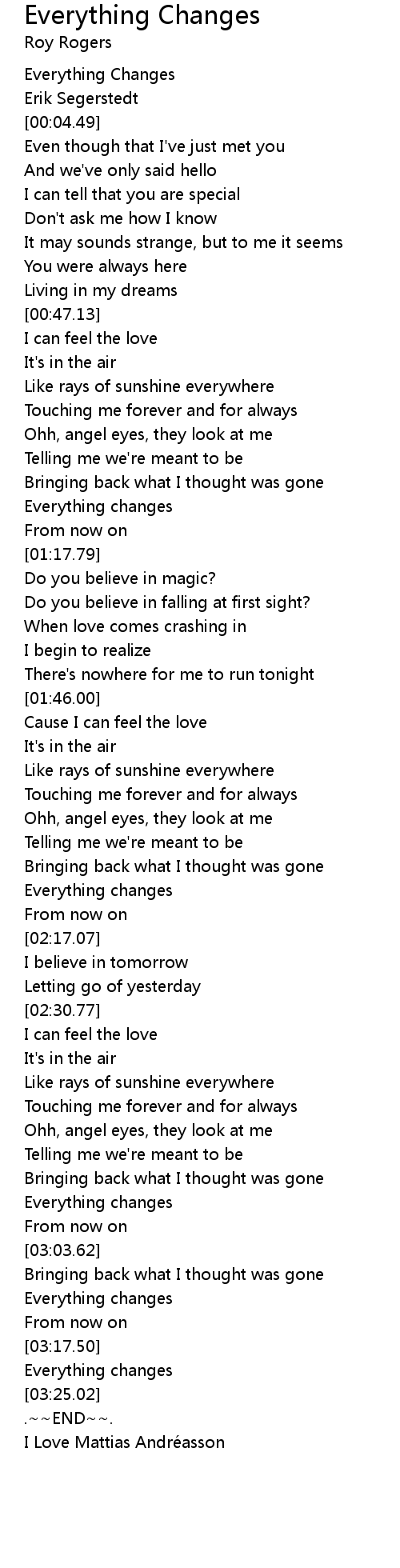 | [00:01.82] | Everything Changes |