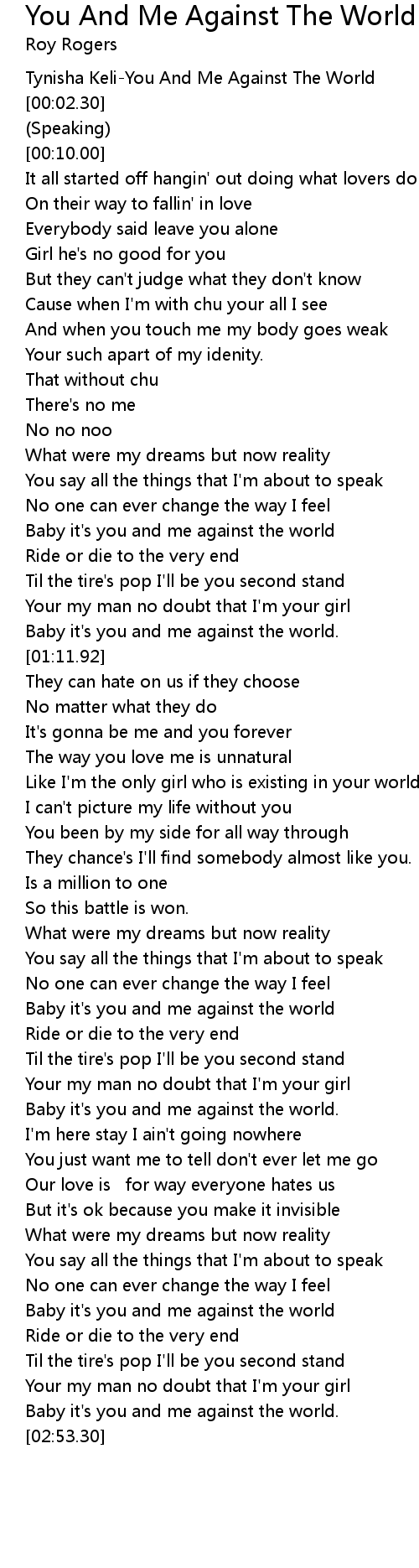 [00:01.00] Tynisha Keli-You And Me Against The World