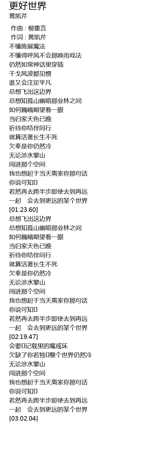 | [02:15.13] | 一起 会去到更远的某个世界 |