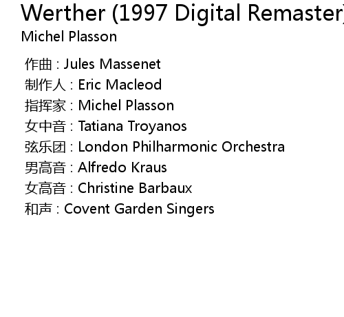 | Song | Werther (1997 Digital Remaster), TROISIEME ACTE/ACT THREE/DRITTER AKT: Et moi Werther...Oui, du jour même où tu parus (Charlotte/Werther/Les enfants/Sophie) |