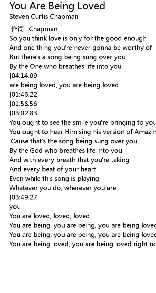 | [03:24.71] | You are being, you are being, you are being loved right now |