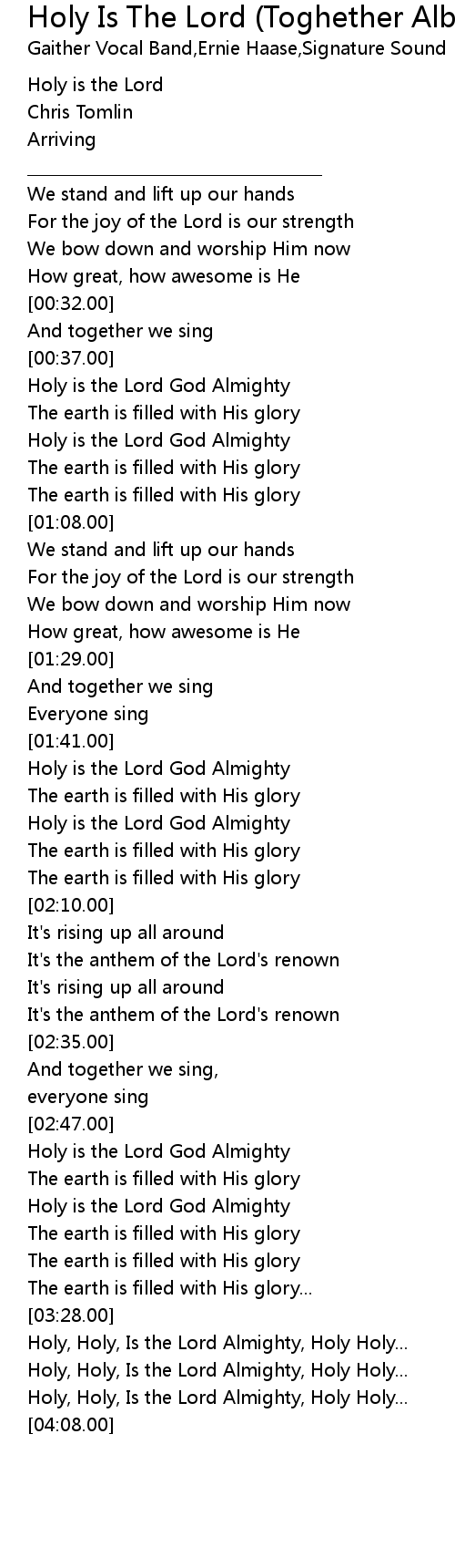 Holy Is The Lord (Toghether Album Version) Lyrics