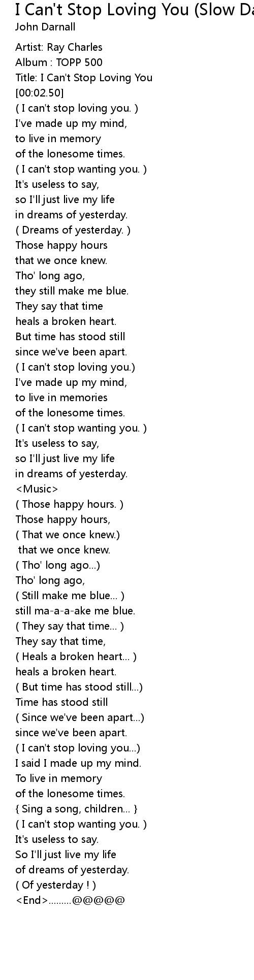 I Can't Stop Loving You (Slow Dancing In THe Fifties Album Version) Lyrics