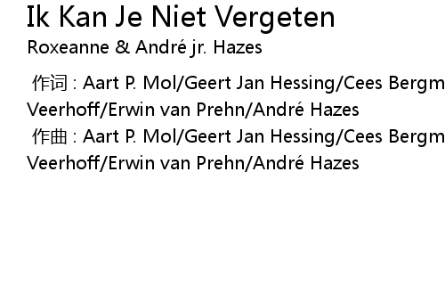 | [00:00.000] | 作词 : Aart P. Mol/Geert Jan Hessing/Cees Bergman/Elmer F. Veerhoff/Erwin van Prehn/André Hazes |