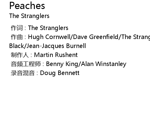| [00:00.000] | 作曲 : Hugh Cornwell/Dave Greenfield/The Stranglers/Jet Black/Jean-Jacques Burnell |