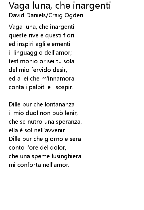 | Song | Vaga luna, che inargenti |