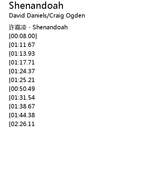 | [00:02.00] | 许嘉凌 - Shenandoah |